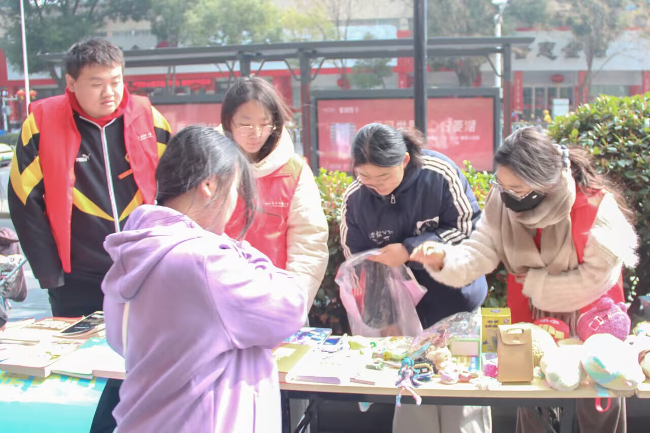 闲置玩偶、旧书籍、手工艺品……志愿者们将从学校内募捐而来的物品整齐摆放,进行义卖。每一件义卖品都承载着捐赠者的心意。志愿者们热情地向过往市民介绍活动初衷,呼吁大家积极参与公益,尽己所能传递大爱,用实际行动支持爱心事业,让闲置物品焕发出温暖的公益价值。市民们也纷纷驻足,有的精心挑选书籍,有的为孩子选购玩具,有的慷慨解囊支持公益,为义卖活动贡献出自己的一份力量。