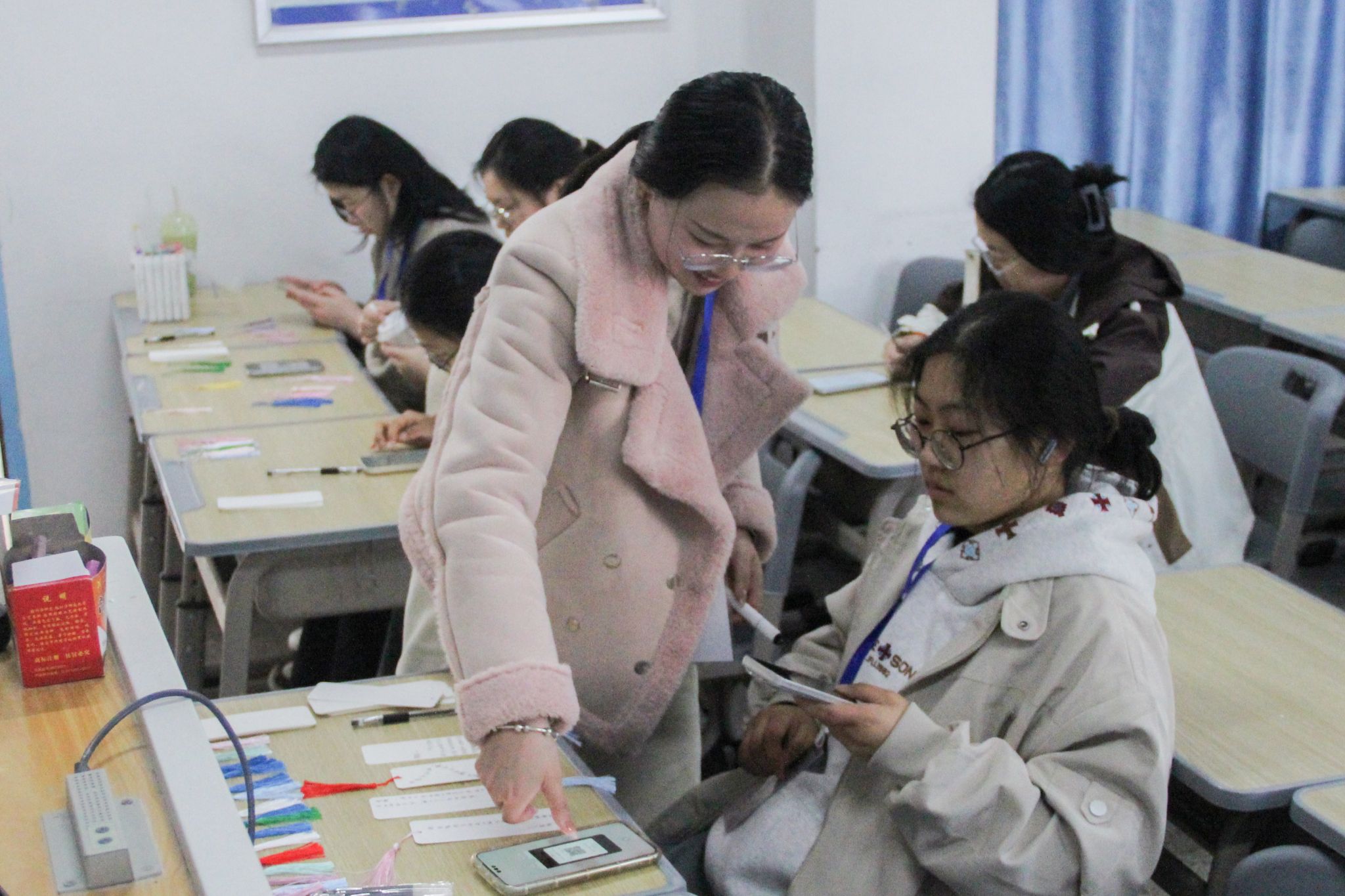 活动当天,志愿者们布置好场地,整齐摆放着空白流苏书签以及书写、绘画工具。前来参与的同学络绎不绝,在创作环节,同学们围绕雷锋事迹、经典语录以及自身对雷锋精神的体悟展开构思。有的同学以细腻的笔触勾勒出雷锋助人为乐的经典场景,有的用工整的字迹抄下“人的生命是有限的,可是为人民服务是无限的”等名言,有的则结合亲身参与的志愿服务经历,写下自己对雷锋精神的理解与感悟。创作过程中,大家不时相互交流,分享自己的设计灵感和书写内容。