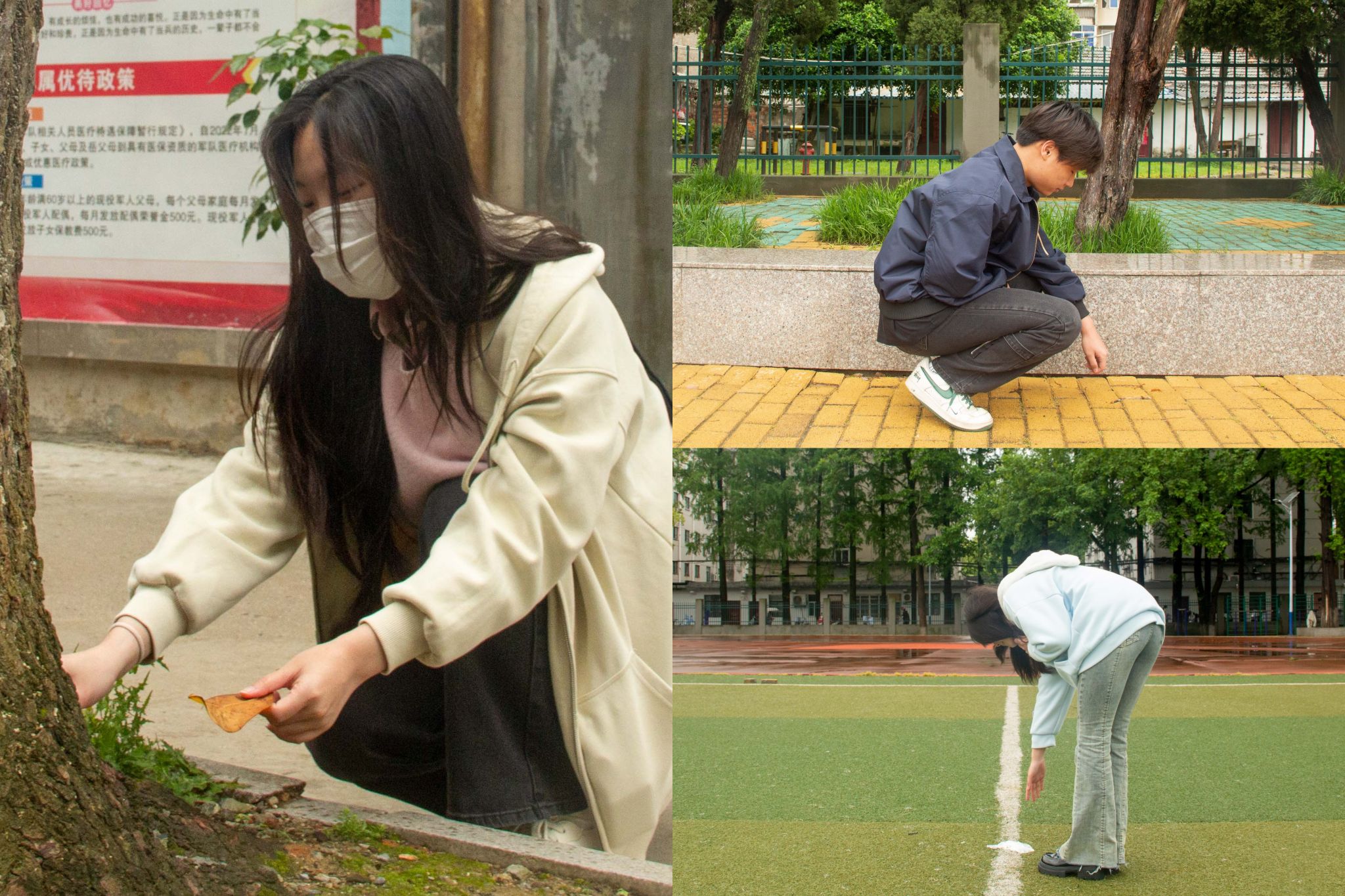 绵绵细雨轻轻洒落,微凉的雨水没有浇灭学生们打扫校园的高涨热情。在风雨操场,志愿者们仔细捡拾跑道和草坪上的纸屑、塑料袋等白色垃圾;在主干道两侧,同学们认真清扫掉落在路面上的枯枝烂叶,并用簸箕及时清理装袋。志愿者们主动钻进绿化带深处,不放过任何一处卫生盲区,将隐藏在灌木丛中的烟头、包装袋等杂物一一夹出,用细致的劳动为校园扫除“顽疾”。