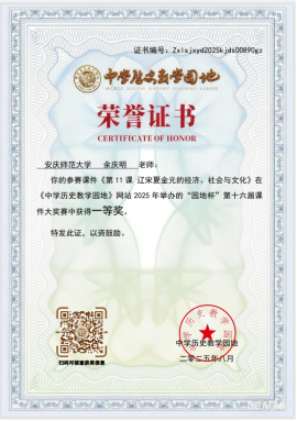 近日,由“中学历史教学园地”网站主办的“园地杯”第十六届初高中课件大奖赛获奖结果揭晓,伟德国际1946源于英国2024级学科教学(历史)硕士研究生余庆明凭借优异表现获大赛一等奖,展现了我院学子扎实的专业素养与创新能力。