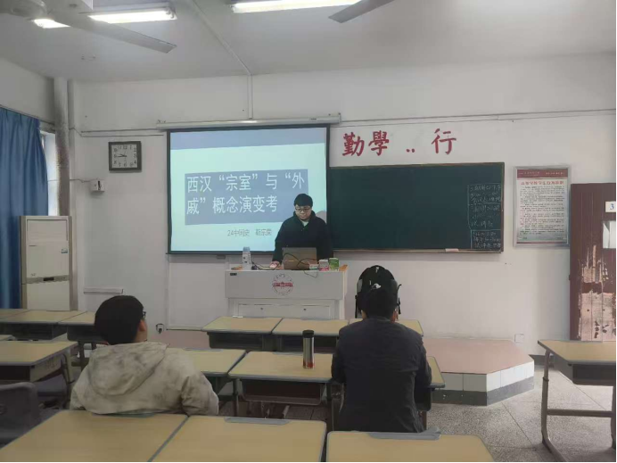 本次学术沙龙分为论文汇报、评议人评议、与会学生评议及教师指导四个环节。靳宗荣同学以《西汉“宗室”与“外戚”概念演变考》为题进行汇报,该研究聚焦西汉时期“宗室”与“外戚”两大政治群体概念的动态演变过程,通过梳理史料,试图揭示二者在政治结构中的角色变迁及其对汉代政治生态的影响。刘飞同学以《<独立评论>教育言论研究(1932-1937)》为题展开分享,该研究以《独立评论》杂志为切入点,系统考察了1932年至1937年间该刊围绕教育问题展开的讨论,分析了相关教育言论背后的思想脉络及其与当时社会变革的关联。