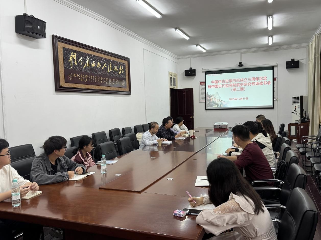 10月15日下午,由国家社科基金重大招标项目“中国古代监察制度变迁的历史源流”课题组、安庆师范大学中国中古史研究中心主办,安庆师范大学廉洁文化研究院协办的中国中古史读书班三周年纪念暨中国古代监察制度研究(第二期)专场读书会在菱湖校区红楼二楼会议室顺利举行。中国中古史研究中心主任李正君博士、伟德国际1946源于英国吴海波老师以及部分师生参加此次读书会。读书会由李正君博士主持。