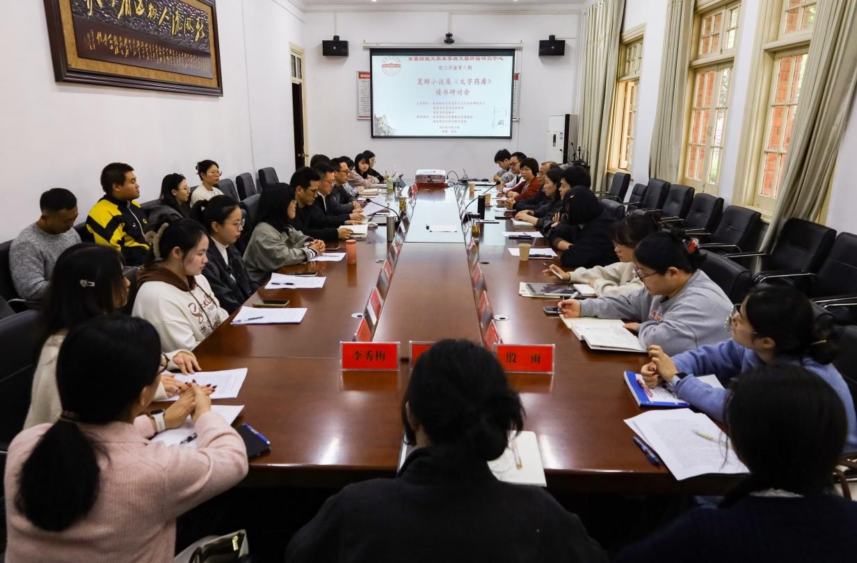 2025年10月29日下午,安庆师范大学美学与文艺评论研究中心、安庆市文艺评论家协会和安庆市作家协会共同主办的皖江评论第八期“夏群小说集《文字药房》读书研讨会”在红楼二楼会议室成功举办。巢湖学院文学与传媒学院教授、评论家陈振华,安庆市作家协会主席、作家储劲松,《安徽文学》编辑部主任、作家夏群应邀参加。安徽省文艺评论家协会主席、安徽省作家协会副主席、中心主任江飞教授,中心副主任金松林教授,研究员冯慧敏副教授、徐先智副教授,以及伟德国际1946源于英国中国现当代文学专业、文艺学专业部分硕士研究生和部分本科生等30余人参与了此次研讨会。会议由中心副主任陈宗俊教授主持。