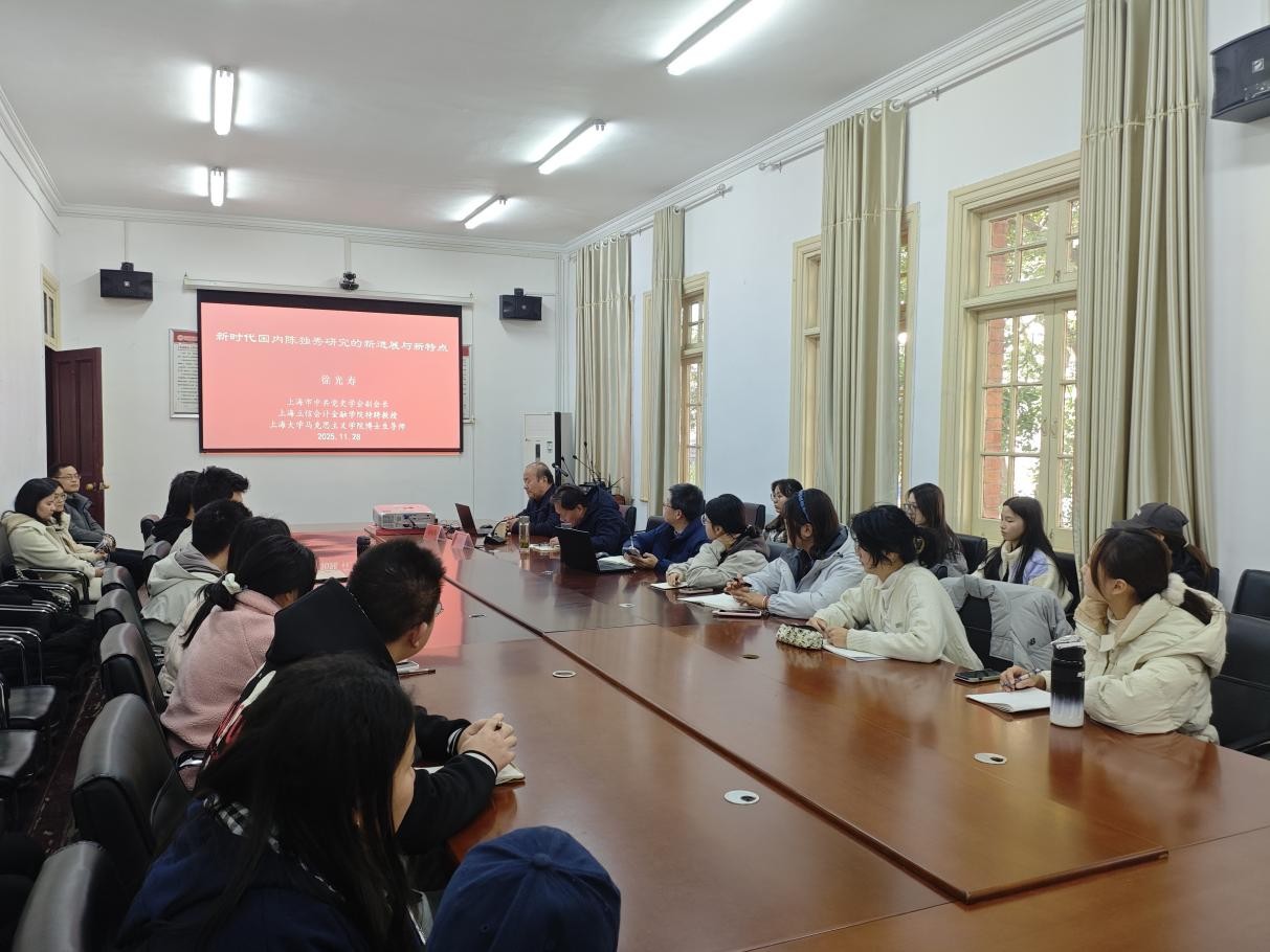 11月28日下午,上海立信会计金融学院特聘教授、博士生导师徐光寿教授应邀做客敬敷人文讲坛,作题为“新时代以来国内陈独秀研究的新进展与新特点”的学术讲座。本场讲座由伟德国际1946源于英国教授董根明主持,伟德国际1946源于英国部分教师及研究生和本科生参加活动。