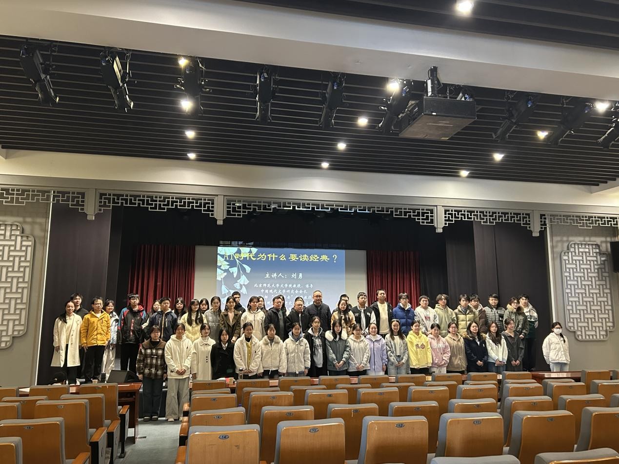 最后,汪孔丰院长为本场讲座作学术总结。他指出,刘教授的讲座总结了在AI时代背景下重拾经典阅读的重要性,更强调了批判性思维与深度思考的必要性。希望同学们在拥抱科技发展的同时,能通过经典阅读拓宽认知边界、提升精神境界,让经典的智慧为人生之路赋能。此次讲座既为人文素养教育的创新开展提供了鲜活思路,也对安庆师大人文专业建设、人才培养及科研创新具有重要指导意义。