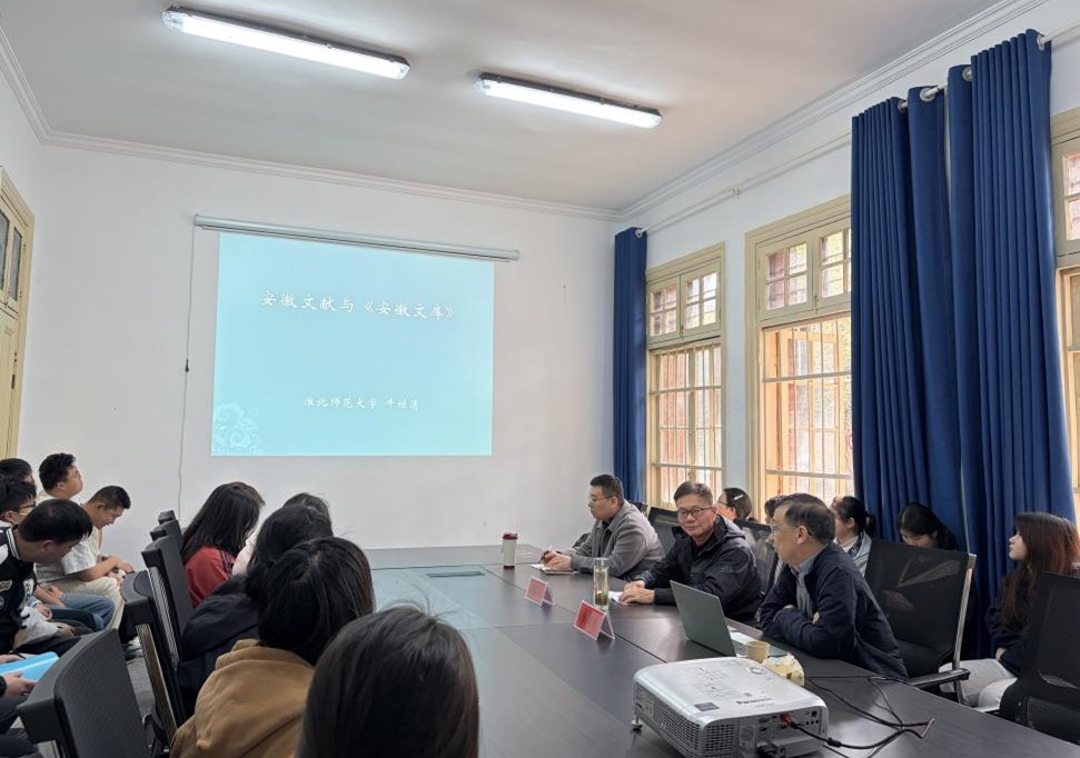 讲座最后,董根明教授进行了简要总结。他指出,牛继清教授的讲座视野宏阔、史料翔实,不仅展现了深厚的文献学功底,更通过对《安徽文库》的讲解,为师生们展示了地方文献研究的前沿动态与实践价值。本次讲座对于提升师生的人文素养、推进安庆地方文献整理、助力我校高峰学科建设具有重要的指导意义。