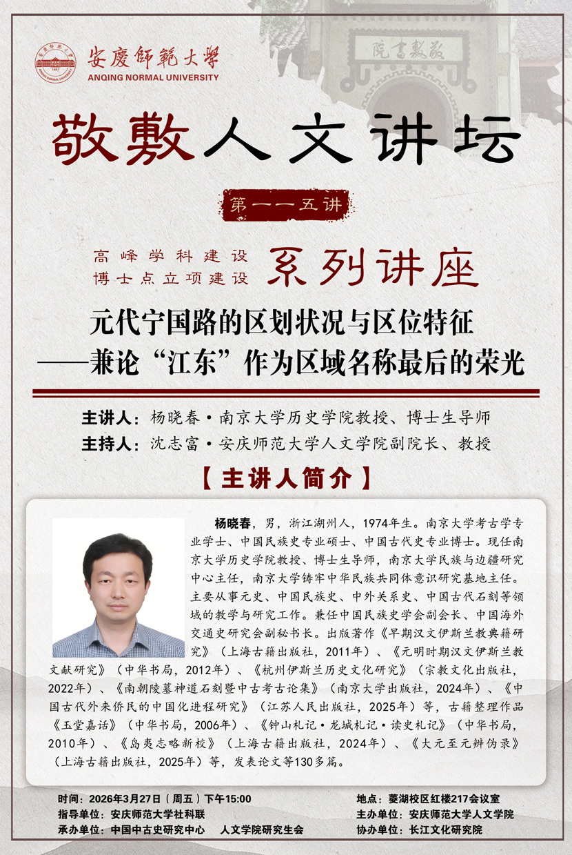 【敬敷人文讲坛(115)】元代宁国路的区划状况与区位特征----兼论“江东”作为区域名称最后的荣光