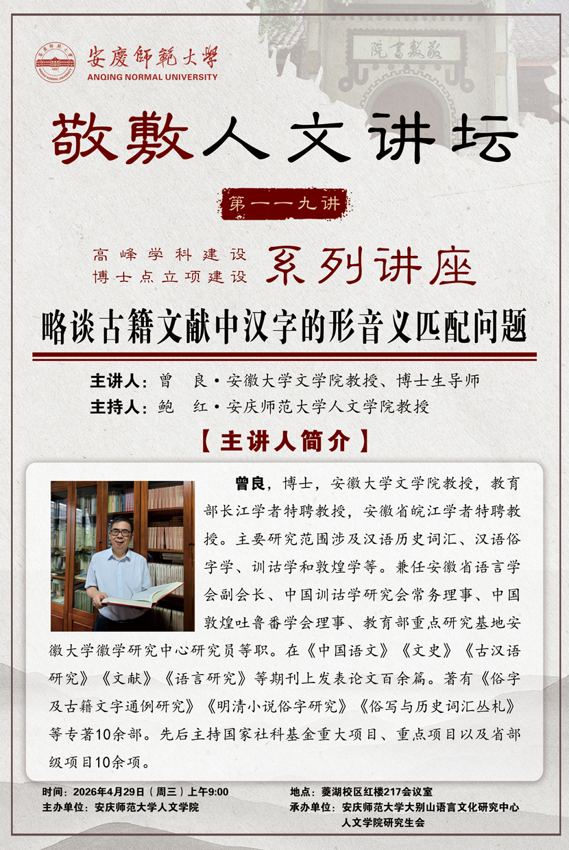 【敬敷人文讲坛(119)】略谈古籍文献中汉字的形音义匹配问题