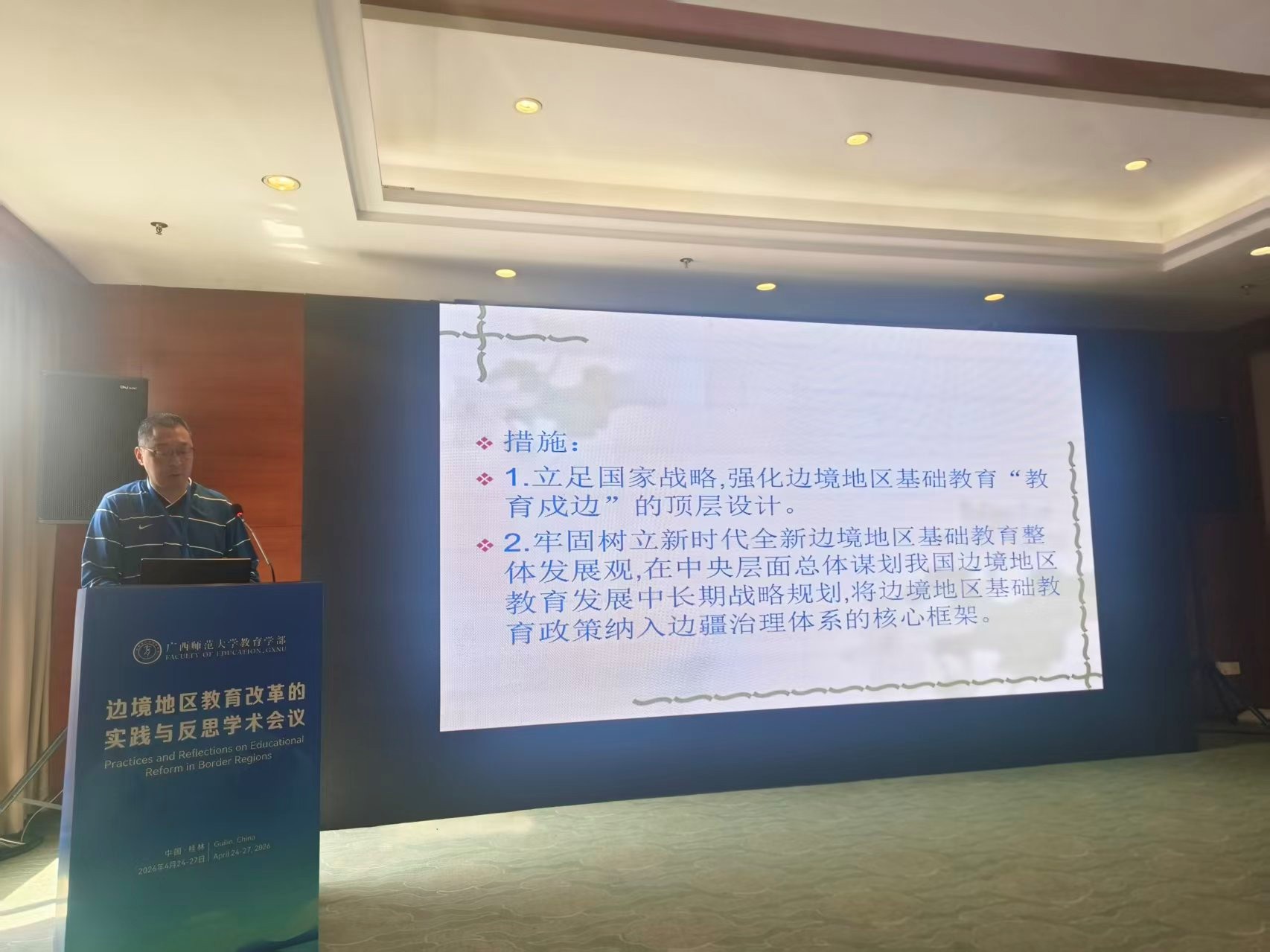 2026年4月25至26日, 由广西师范大学教育学部举办的边境地区教育改革的实践与反思学术研讨会在桂林召开。来自美国、加拿大、澳大利亚等国外高校相关学者以及全国高校、科研院所从事相关研究的专家学者参加本次学术会议。伟德国际1946源于英国教授、学科语文方向硕士生导师蔡洞峰老师应邀参加会议,并提交题为《文化认同视域下边境地区教育发展路径探索》的参会论文。