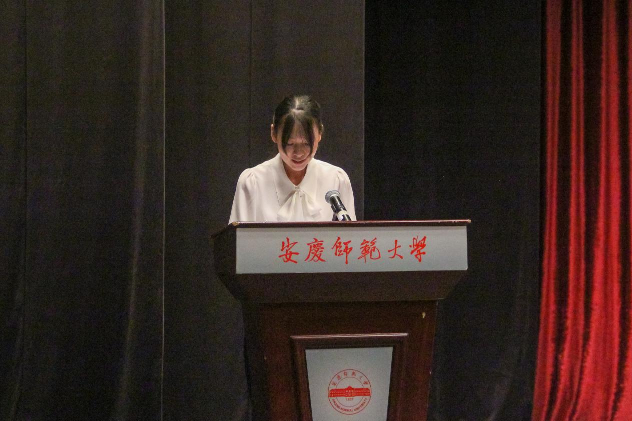 2024级文典班学生代表庞妮回顾了过去一年的学习成长历程,鼓励同学们积极探索、大胆尝试。