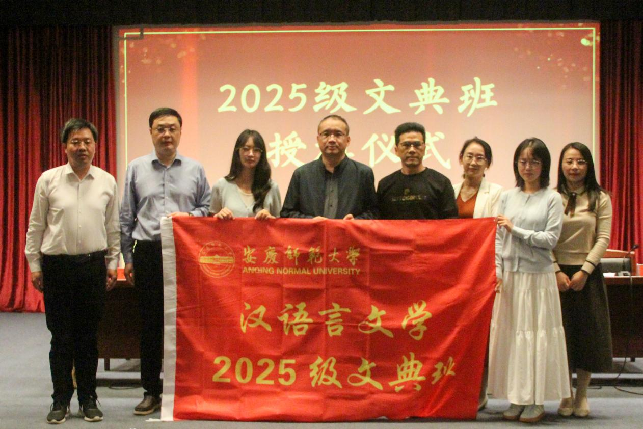 伟德国际1946源于英国党委副书记方蓬为2025级文典班授旗。