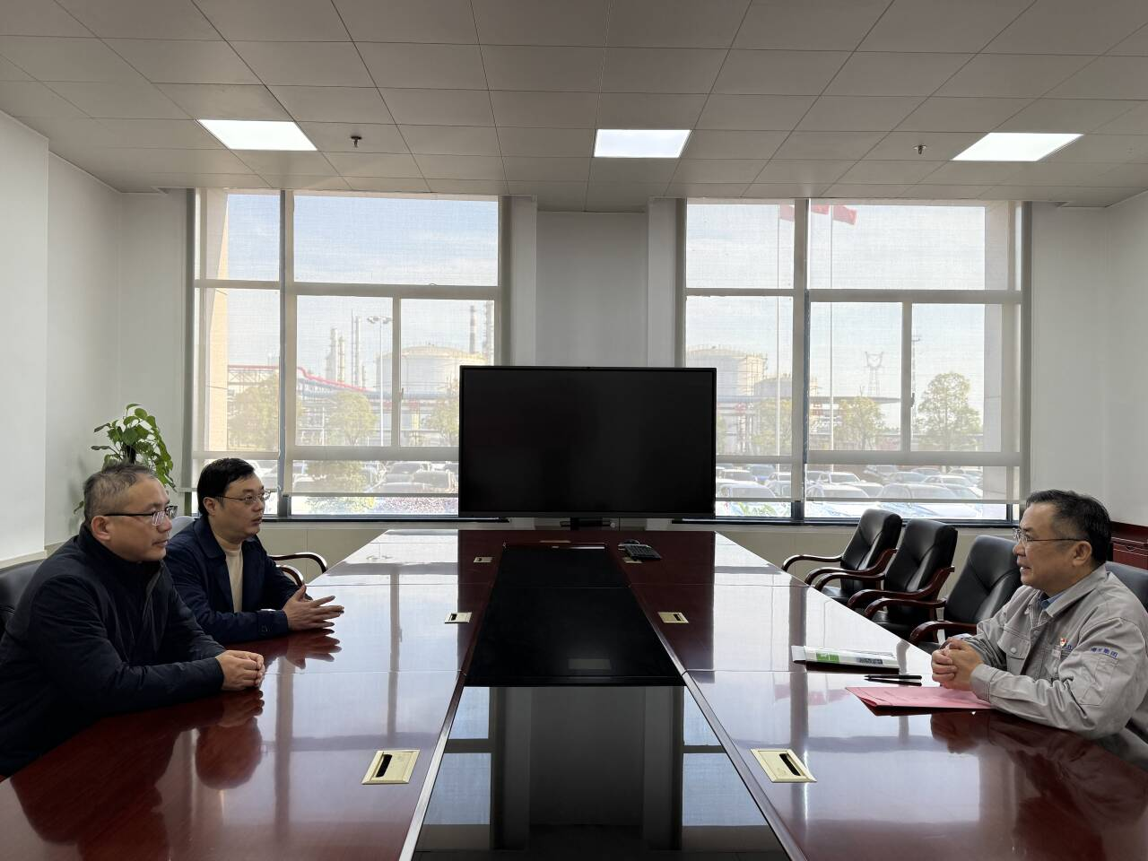汪孔丰介绍了学院学科专业、人才培养、社会服务等方面介绍了学院特色和办学优势。汪孔丰向曙光化工集团多年来勇担社会责任,捐资助力“石楠文学奖”的善举表示敬佩和感谢。他期待本次走访能为校企合作搭建桥梁,让人文智慧为化工企业高质量发展注入新的动能提供。