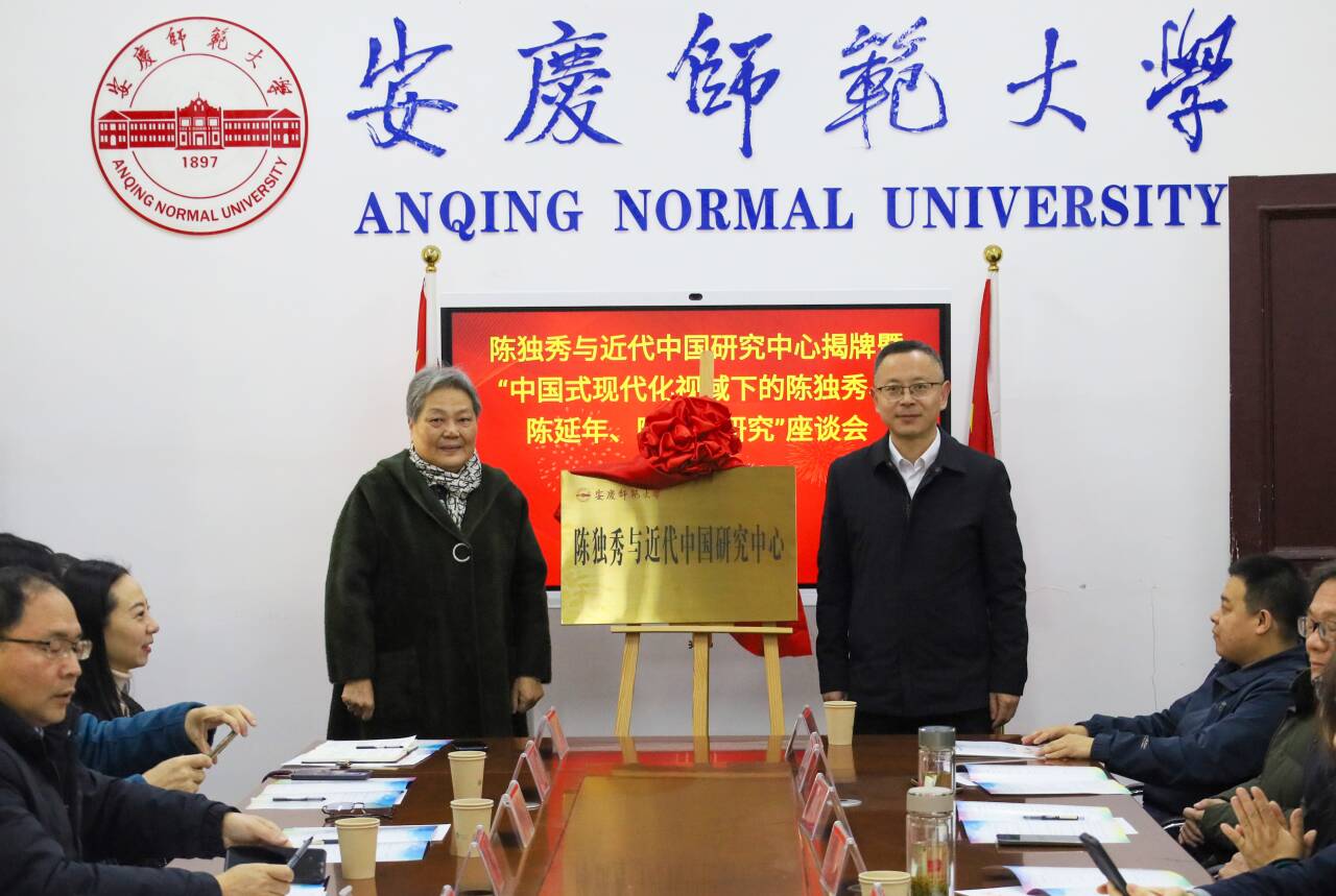 11月28日,安庆师范大学陈独秀与近代中国研究中心揭牌暨“中国式现代化视域下的陈独秀、陈延年、陈乔年研究”座谈会在我校举行。校党委常委、副校长徐晓宁,来自上海、安徽等地的专家学者,安庆市委史志室、独秀园管理处负责人,我校科研处、教务处、伟德国际1946源于英国、马克思主义学院以及有关科研平台负责人出席会议。伟德国际1946源于英国院长汪孔丰主持揭牌仪式。