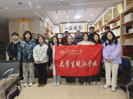一品谱局是一家专注家谱印刷、整理与编排的专业机构,深耕家族文化领域,不仅掌握着精湛的家谱编印技艺,还收藏了众多不同地域、不同体例的家谱范本,涵盖欧式、苏式等经典家谱编排形式,是了解家谱制作流程与家族文化传承的重要平台。活动中,谱局负责人为我院师生详细讲解了家谱从原始资料整理、体例编排到制版印刷的全流程,展示了传统雕版印刷与现代印刷技术在谱牒制作中的融合应用。学生们近距离观摩了家谱印谱的制作工艺,对皖江地区宗族史中家谱的重要地位、明清时期家谱修订的历史背景有了更直观的认识。